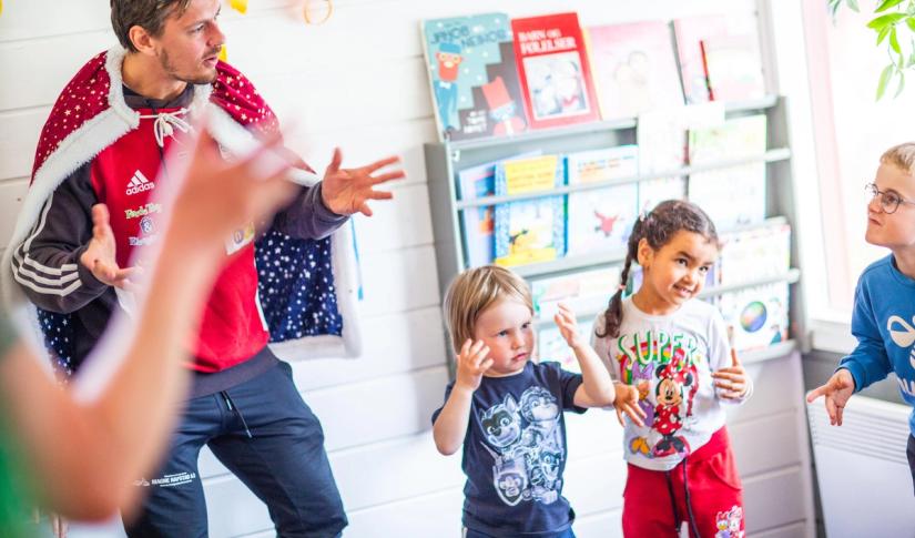 Sangstund på tvers av generasjoner skaper gode øyeblikk, glede og bevegelse for både små og store.