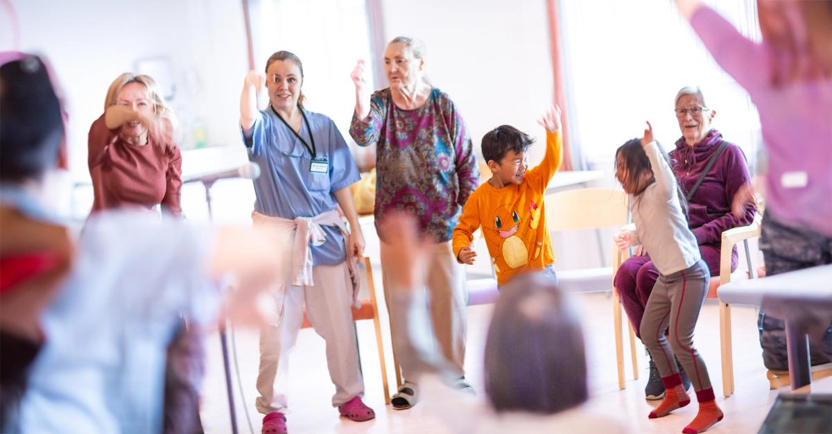 Sangmøter mellom barn og eldre gir energi, aktivitet og magiske øyeblikk. Hvorfor ikke besøke nærmeste eldreinstitusjon en gang i uken og gjennomføre samlingsstunden der?