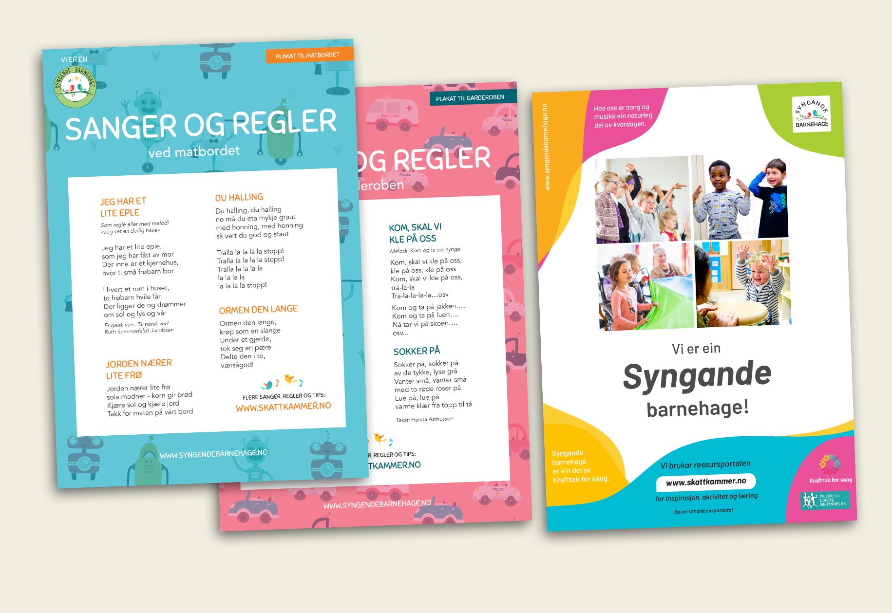 Du kan bestille plakater til ulike rom, plakaten "Vi er en Syngende barnehage!" samt brosjyrer ved å sende en e-post til post@musikkfralivetsbegynnelse.no.